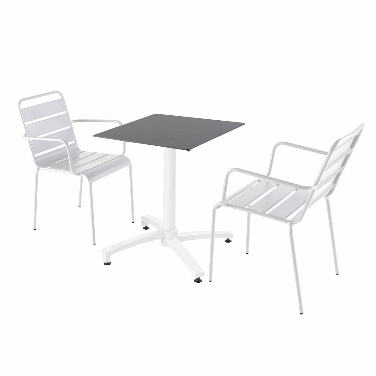 Oviala Business Set Terrassentisch aus Schieferlaminat und 2 weißen Sesseln