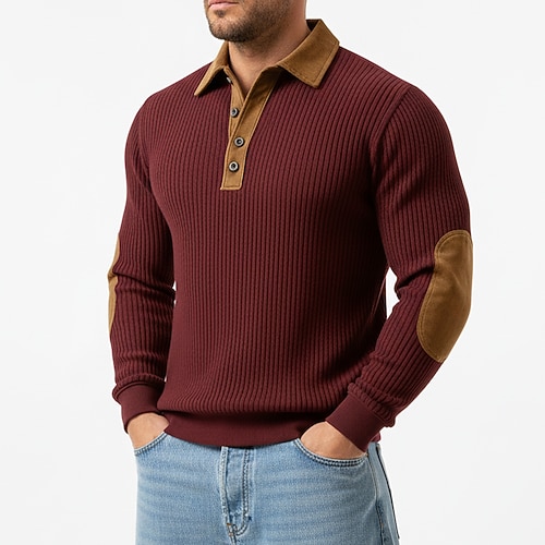 Per uomo Maglia Maglione Felpa con cappuccio abbottonata Maglia a coste Verde militare Borgogna Blu marino Cachi Colletto Polo Semplice Patchwork Blocco di colore Testurizzato Casuale Quotidiano