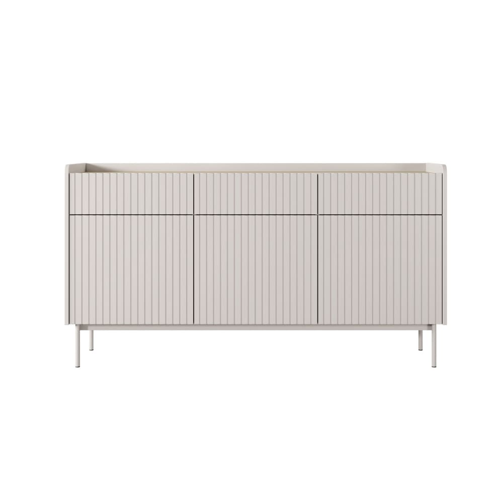 Madia 3 ante e 3 cassetti beige opaco con top rovere, 82x153x38 cm