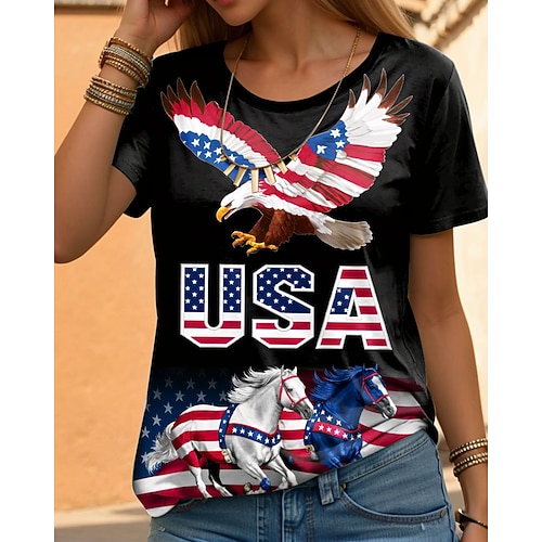 Giorno dell'Indipendenza Americana Per donna Maglietta Grafico Bandiera Lettera Vintage Moda Elegante Manica Corta Girocollo Top Regolari Quotidiano Weekend Stampato Nero Estate Primavera Autunno