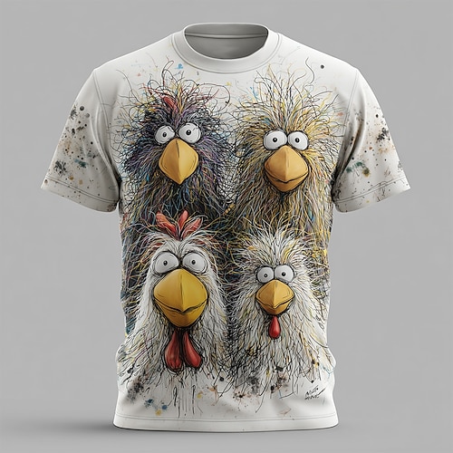 Per uomo Gallo Divertente Maglietta Manica Corta maglietta Stampa 3D Girocollo Camicia Esagerato Designer Feste Ferie Bianco 1 Bianco 2 Bianco 3 Estate Primavera Abbigliamento S M L XL XXL XXXL