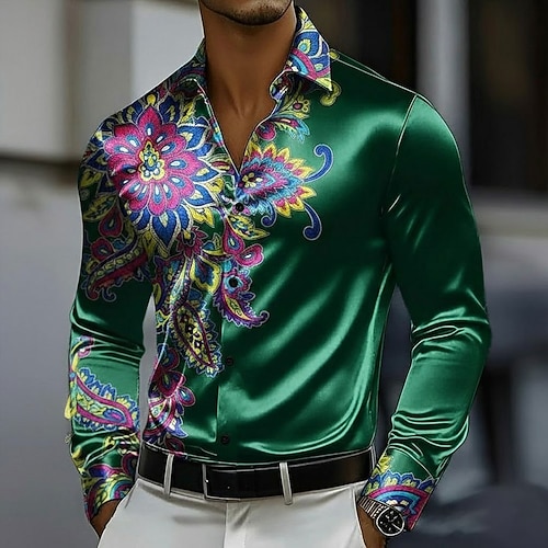 Per uomo Paisley Stampa Floreale Fiori Camicia Camicia in raso Camicia elegante Manica Lunga Vintage Retrò Vacanza Abbigliamento Quotidiano Estate Primavera Autunno Collo ripiegato Stampa 3D Camicie