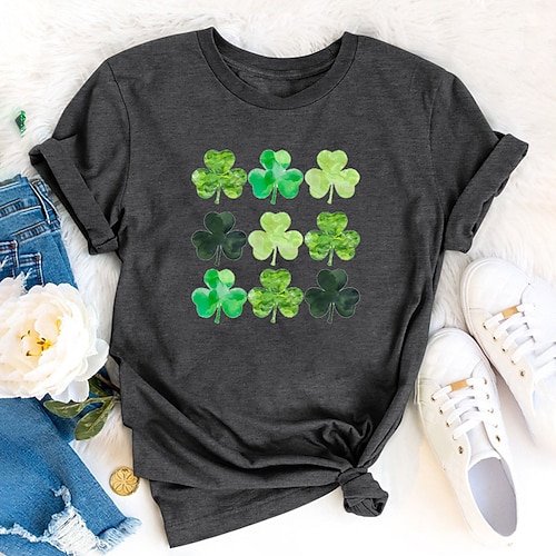 Giorno di San Patrizio Festa di San Patrizio Per donna Maglietta Foglia Giorno di San Patrizio Manica Corta Girocollo Top Regolari Ferie Weekend Stampato Blu Nero Bianco Verde Grigio chiaro