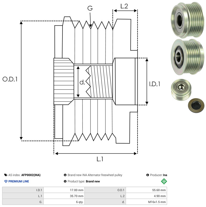 AS-PL Generatorfreilauf AFP0002(INA) für DAEWOO MERCEDES-BENZ SSANGYONG OPEL CHEVROLET A6041500160 4805492 93743440