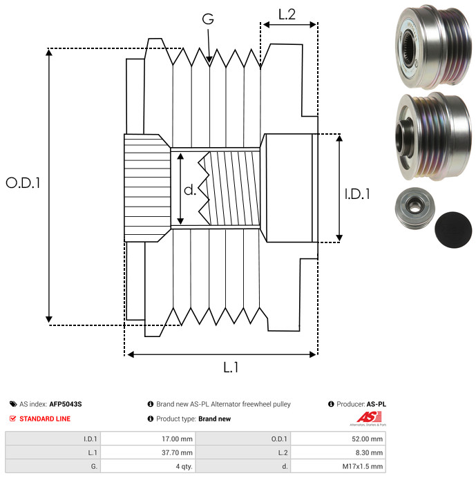 AS-PL Generatorfreilauf AFP3059(LITENS) für PEUGEOT TOYOTA SU001-A6341 SU001-A4985 9810856580