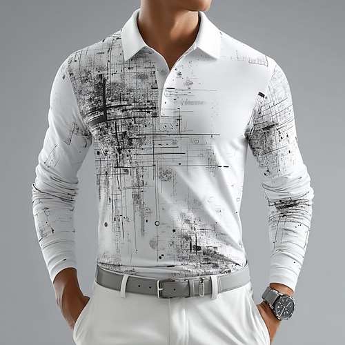 Per uomo Geometrico Astratto Polo Manica Lunga Magliette polo Bavero Casual All'aperto Streetwear Athleisure Abbigliamento quotidiano Stampa 3D Bottoni Primavera Autunno Inverno Bianco Giallo Blu