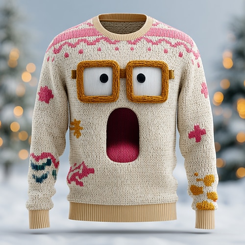 Maglione di Natale brutto Per uomo Grafico Stampa 3D Maglione Maglieria Girocollo Casual Vacanza Quotidiano Festival Stampa 3D Tenere al caldo Manica Lunga Primavera Autunno Inverno Aalbicocca