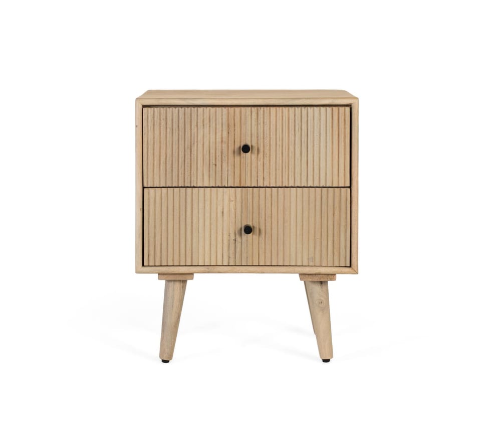 Cassettiera in legno chiaro e bianco con 4 cassetti