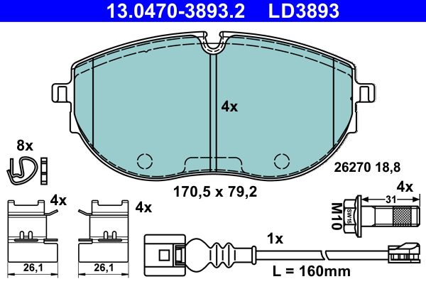 ATE Bremsbelagsatz, Scheibenbremse 13.0470-3893.2 vorne rechts links mit Zubehör für VAG 7LA698151A 7LA698151C 7LA698151E