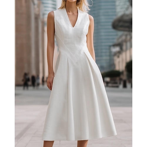 Per donna Abito Midi Abito Bianco Vestito Casual Tubino Elegante Moda Moderno Quotidiano Vacanza Uscire Vestibilità regolare Semplice Senza Maniche Scollo a V Bianco Estate Primavera