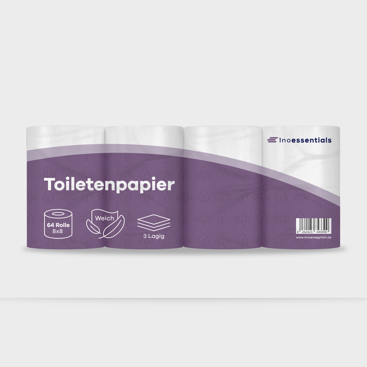 Inoverse Toilettenpapier 64 Rollen, Klopapier 3-lagig, 150 Blätter pro Rolle Wc papier