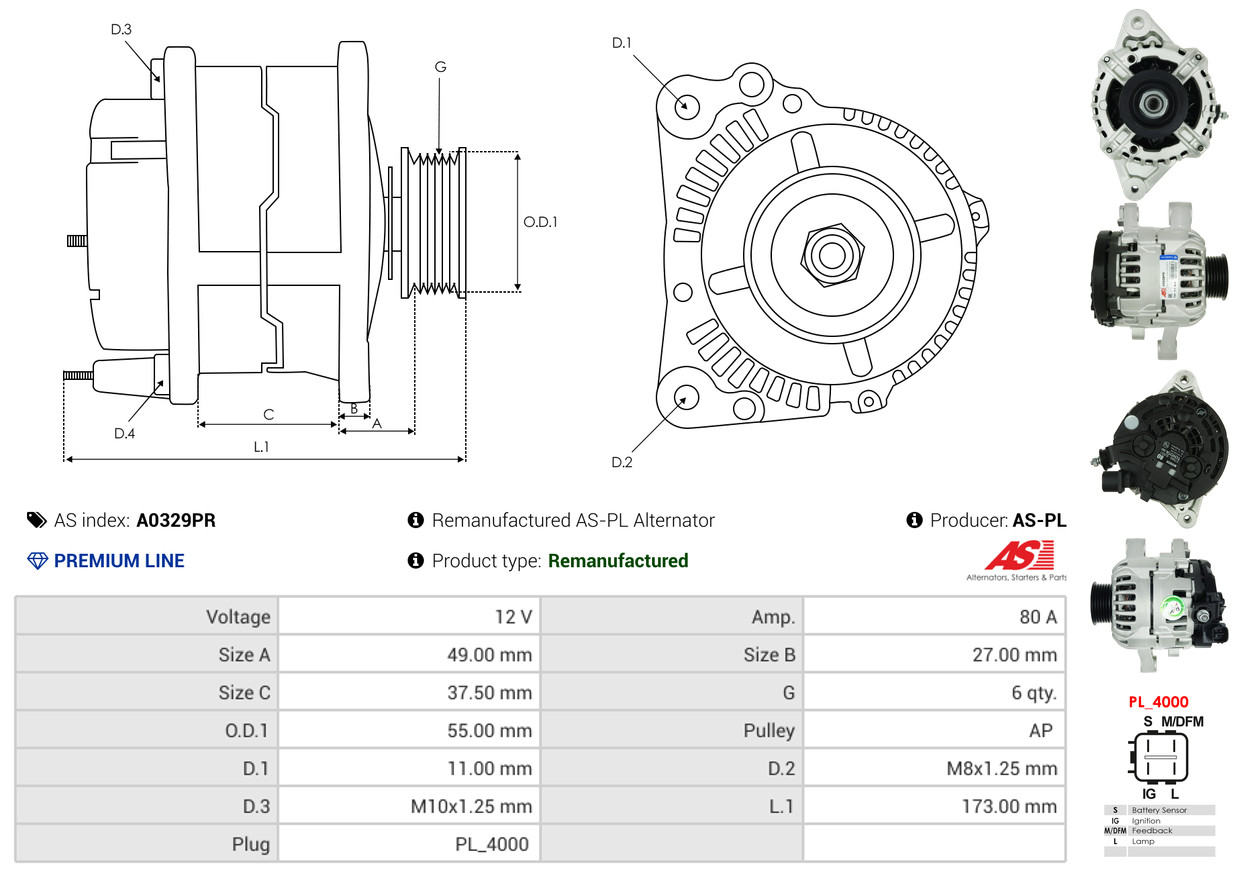 AS-PL Generator A0329PR 12V 80A für TOYOTA 27060-0J051