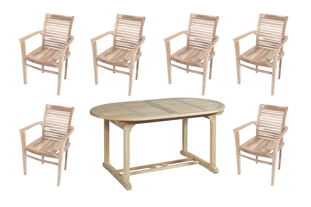 7-teilige Tischgruppe Sitzgruppe Garten Ausziehtisch Tisch Stapelstuhl Teak