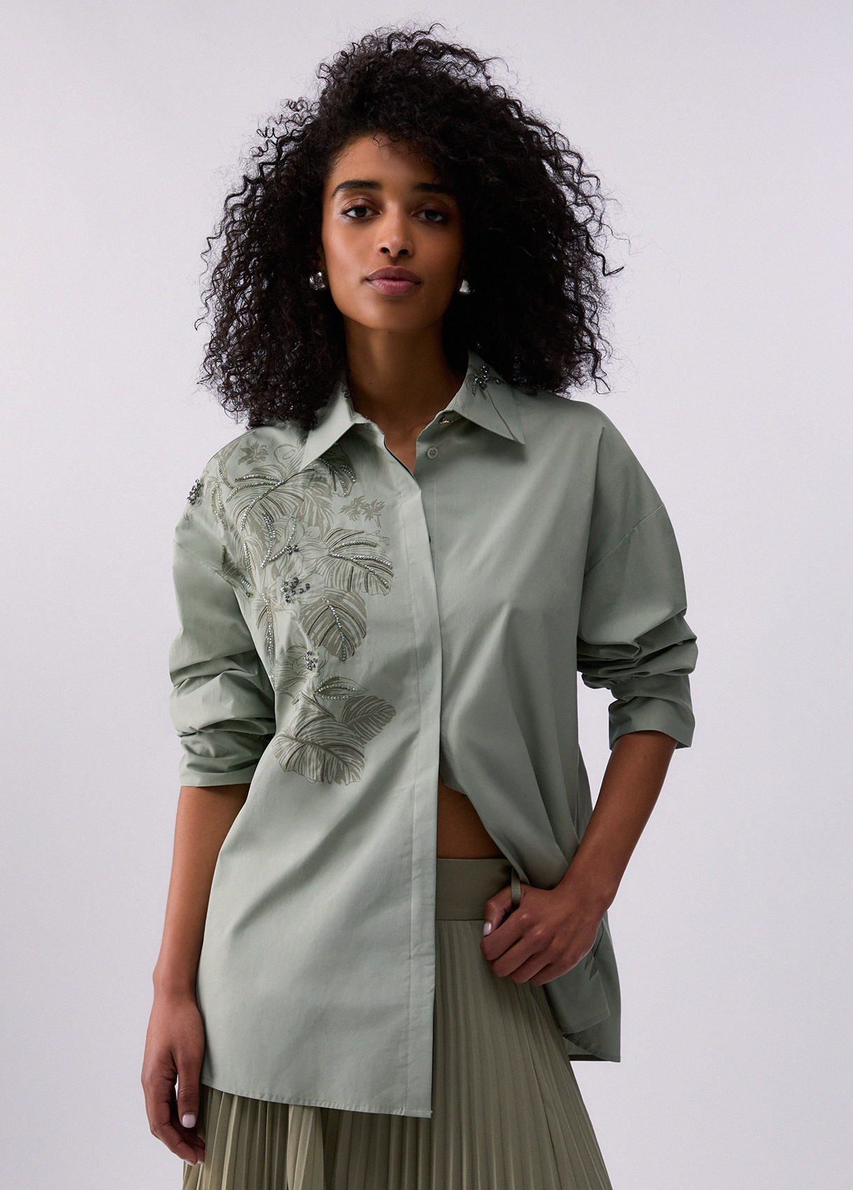 Liu Jo Camicia Oversize Con Ricamo, Verde, 46