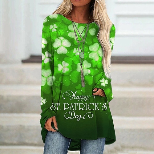 Felpa da donna di San Patrizio grafica trifoglio casual a maniche lunghe collo rotondo top regolari abbigliamento casual quotidiano bianca verde scuro verde primavera autunno inverno