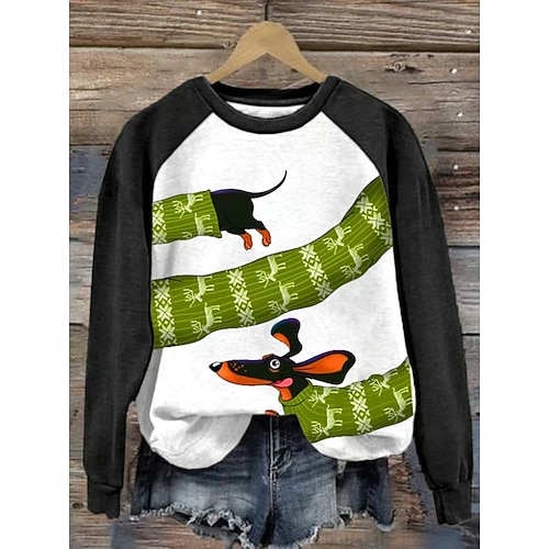 Per donna Felpa Pullover Grafico Animale Plaid Moda Casual Manica Lunga Girocollo Top Regolari Streetwear Abbigliamento Quotidiano Casuale Stampato Nero Verde chiaro Verde Grigio Autunno Inverno
