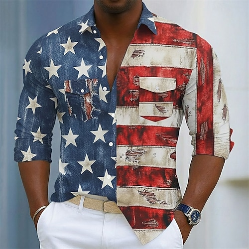 Grafico Bandiera Americana Camicia Camicia button-down Camicia casual Manica Lunga Hawaiano Casual Confortevole All'aperto Vacanza Streetwear Primavera Autunno Collo ripiegato Cardigan con Bottoni