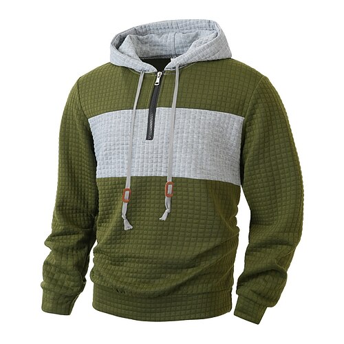 Per uomo Felpa con cappuccio Felpa con cappuccio e zip corta Bianco Verde militare Rosso Grigio Con Cappuccio Blocco di colori Coulisse Patchwork Sport Outdoor Quotidiano Ferie Poliestere