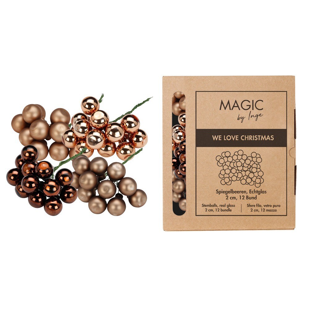 144 Glaskugeln am Draht 2cm Weihnachtskugeln Spiegelbeeren zum Basteln beige