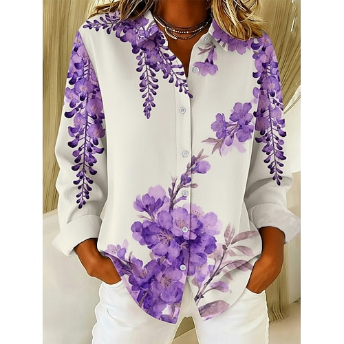 Per donna Camicia Floreale Elegante Casual Manica Lunga Colletto a Camicia Top Regolari Quotidiano Bottoni Stampato Bianco Rosa Primavera Autunno Inverno