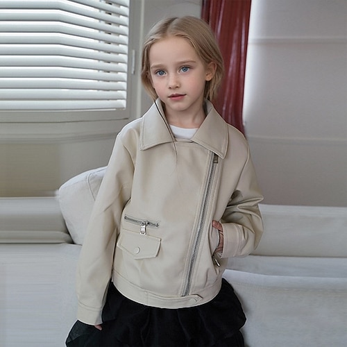 Bambini Ragazze Giacca in pelle nera Giacca di pelle Tinta unica Moda Cerniera Tasca All'aperto Cappotto Capispalla Dai 4 anni in su Autunno Nero Bianco Rosa