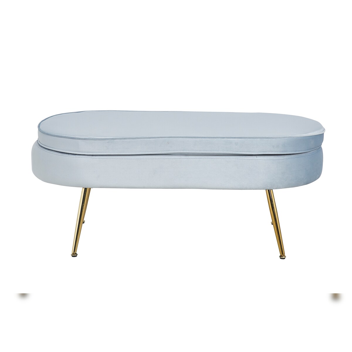 SalesFever Sitzpouf | oval | Bezug Samt-Stoff hellgrau | Gestell Metall goldfarben | B 99 x T 44 x H 40 cm
