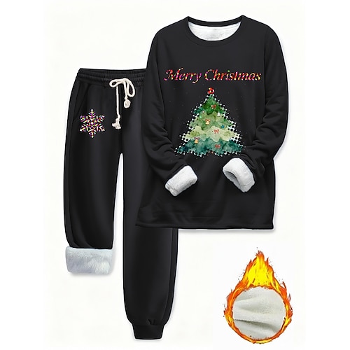 Per donna Quotidiano Elegante Set da due pezzi Tuta Set di Pantaloni Manica Lunga Girocollo Lettera Brutto Natale Coulisse Stampato Casuale Quotidiano Nero Rosa Blu Autunno Vestibilità regolare
