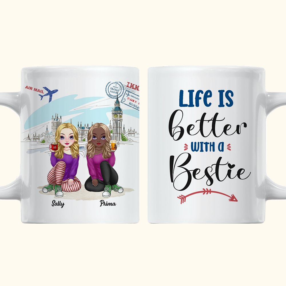 Personalizada La vida es mejor con Besties Tema de viaje Taza de cerámica blanca Regalos de Amistad C-tipo de mango