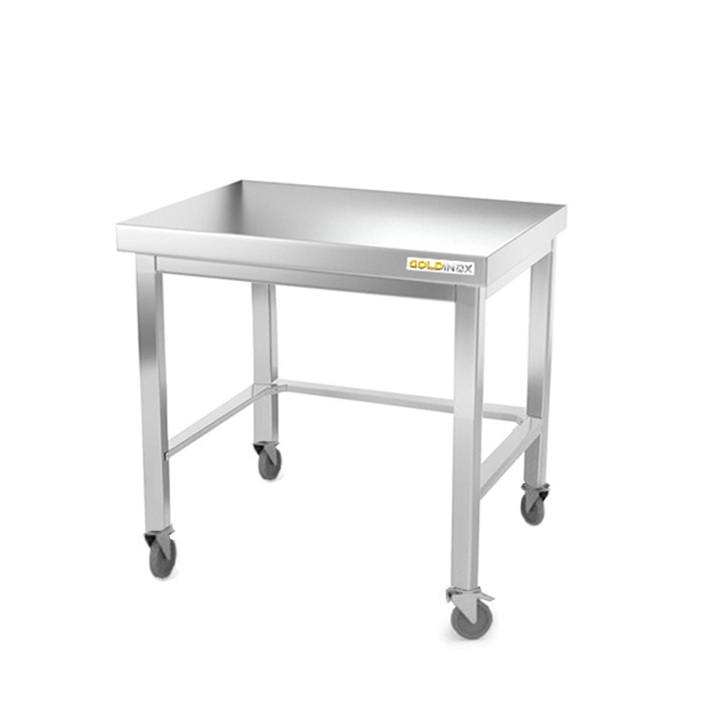 Arbeitstisch aus Edelstahl mit Unterbau 600 x 500 mm und Verstärkung auf PREMIUM-Rollen. GOLDINOX