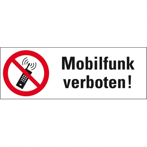 Aufkleber I Verbots-Kombischild Mobilfunk verboten, Folie, selbstklebend, 210x74mm, ASR A1.3, DIN EN ISO 7010