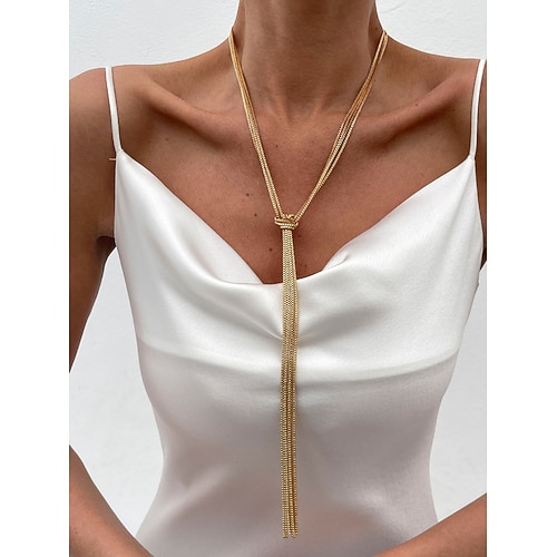 Collana con nappa placcata in oro da donna - elegante girocollo a catena a strati con design a frange lunghe, gioiello importante per feste, locali notturni ed eventi serali