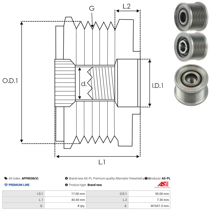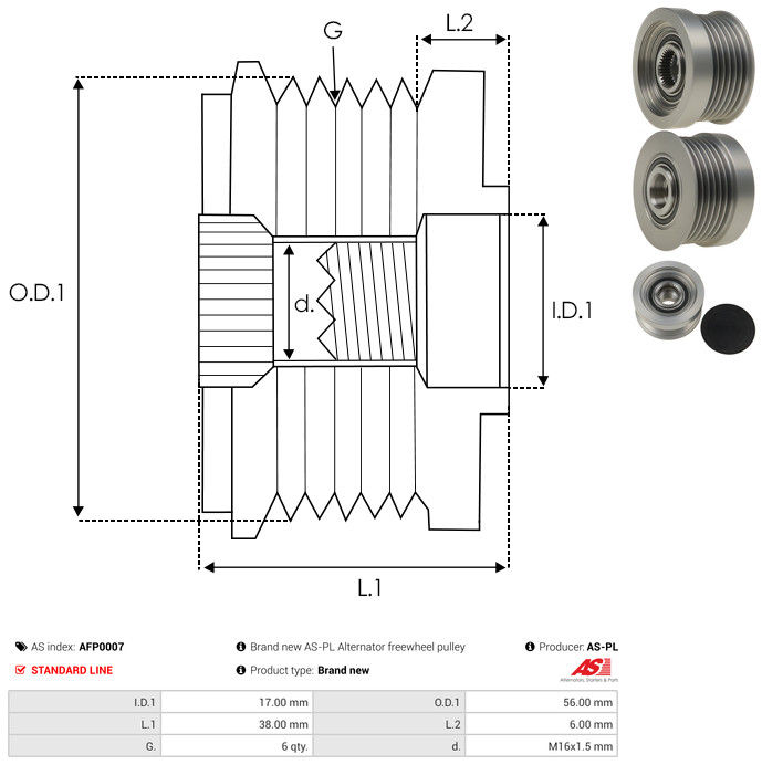 AS-PL Generatorfreilauf AFP0036(V) für MERCEDES-BENZ 6291500160 6291500060 A6291500160