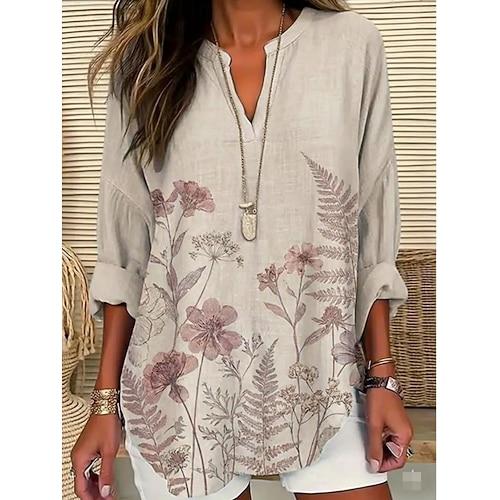 Per donna Camicia Tunica Floreale Grafico Bohemien Quotidiano Elegante Manica Lunga Scollo a V Top Regolari Quotidiano Ferie Stampato Grigio Estate Primavera