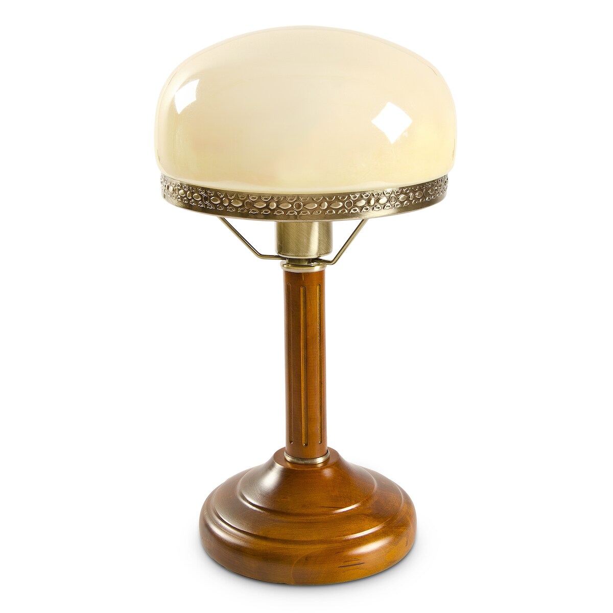 Relaxdays Tischlampe Rund Holzfuß Nostalgie Jugendstil Look, beige / messing-optik 10016611