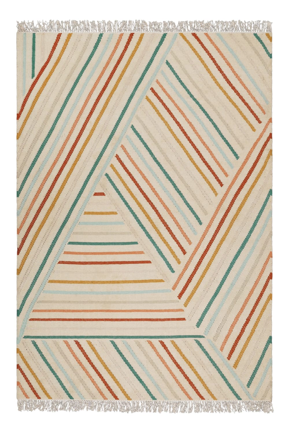 Tappeto tessuto a mano lana vergine frange e multicolore 80x150
