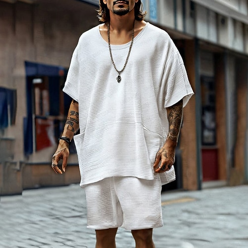 Per uomo Completi T-shirt Outfit 2 pezzi Maglietta e pantaloncini Manica Corta Girocollo Estate Semplice Moda Casual 2 Pezzi Vacanza Abbigliamento quotidiano Uscire Nero Bianco Kaki Maglietta Top per