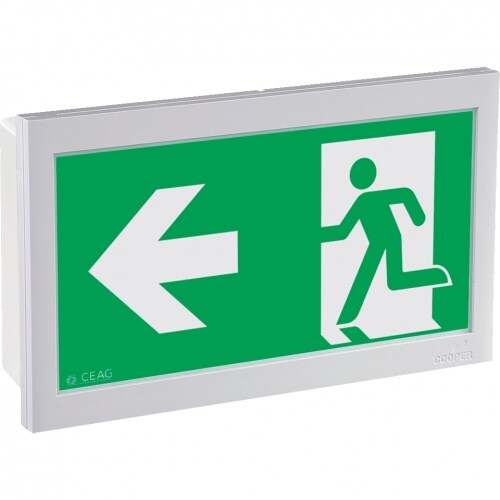 Schild I LED-Piktogramm Rettungszeichen Rettungsweg links, Polycarbonat, 226x134mm, ASR A1.3, DIN EN ISO 7010 E001