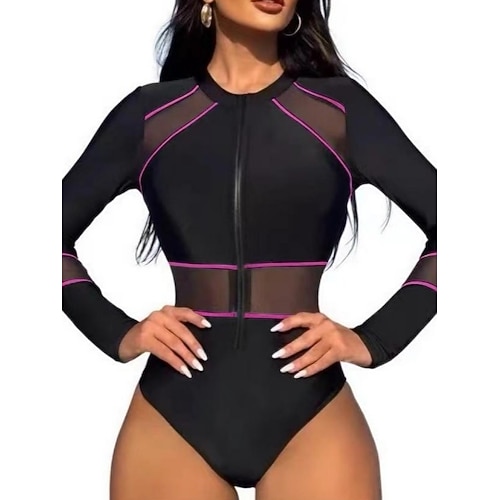 Costume da bagno intero da donna monokini con zip controllo addome vita alta snellente vacanza spiaggia abbigliamento colore a tinta unita scollo alto maniche lunghe