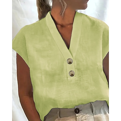Per donna Maglietta Semplice Casual Manica Corta Scollo a V Top Regolari Quotidiano Weekend Bottoni Bianco Rosa Verde Azzurro Estate