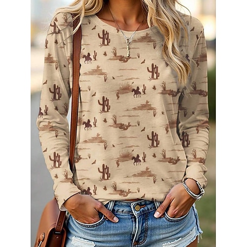 Per donna Maglietta Grafico Animale Piante Moda Elegante Classico Manica Lunga Girocollo Top Regolari Quotidiano Weekend Stampato Cachi Estate Primavera Autunno