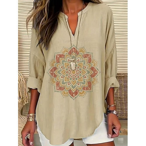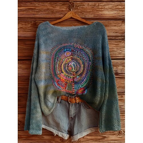 Per donna Maglietta Grafico Tribale Vintage Elegante Casual Manica Lunga Girocollo Top lunghi Quotidiano Stampato Blu Azzurro cielo Arancione Marrone Cachi Primavera Autunno