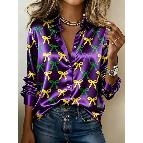 Martedì grasso Per donna Camicia Grafico Geometrico Vintage Elegante Moderno Manica Lunga Colletto a Camicia Top Regolari Quotidiano Ferie Giallo Viola Estate Primavera