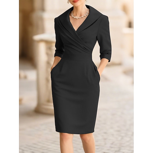 Per donna Abito al ginocchio Abito aderente Vacanza Casual Abiti semi formali Vestibilità aderente Semplice Manica 3/4 Bavero Blu Nero Vino Beige Estate Primavera Autunno
