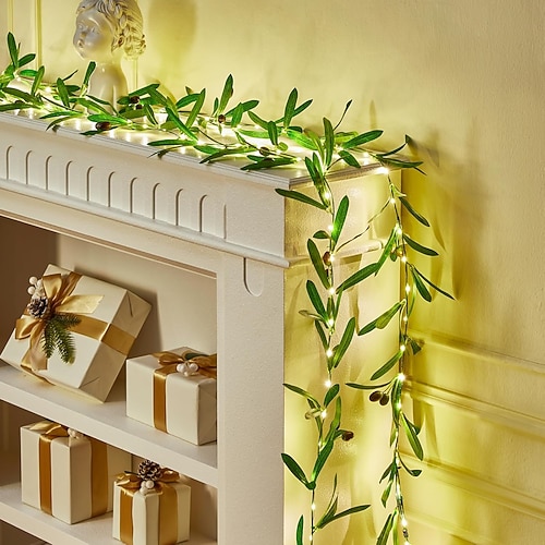 elegante ghirlanda di luci per ricevimenti di nozze - 2 luci artificiali da 10 m e 100 LED, foglie verdi per decorazioni esterne (batterie non incluse)