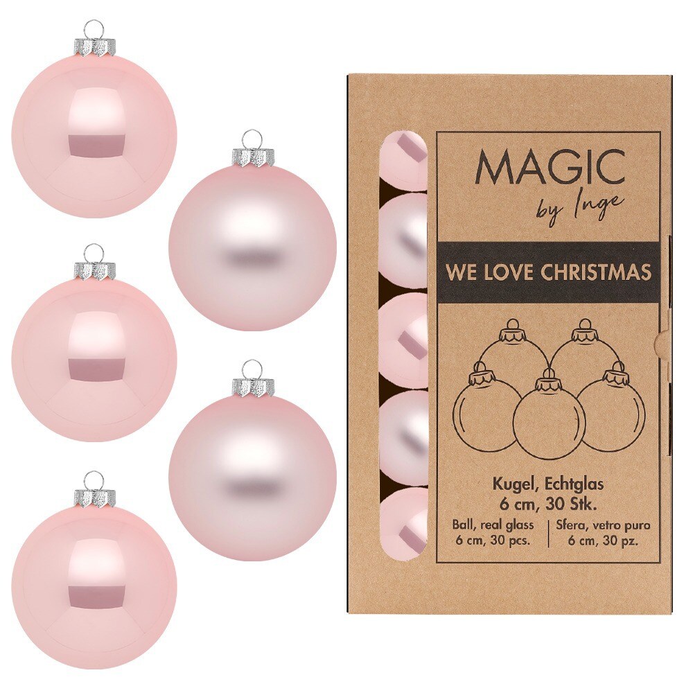 Inges Magic & Goodz 30 Weihnachtskugeln 6cm Glas Christbaumkugeln Weihnachtsbaumkugeln hellrosa