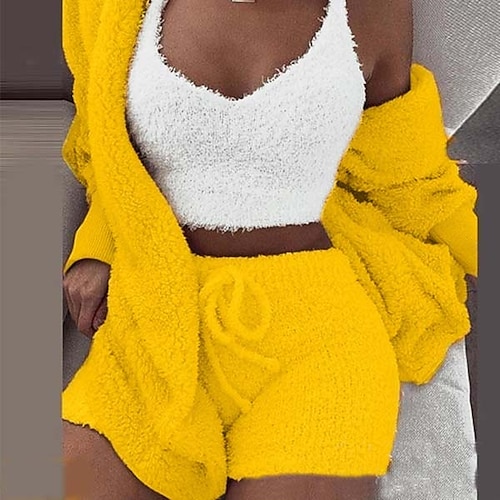 Per donna Caldo Regalo Pigiami Completi Interni Feste Strada San Valentino Poliestere Felpato Semplice Morbido Sport Senza maniche Pantaloncini Autunno Manica lunga Senza maniche