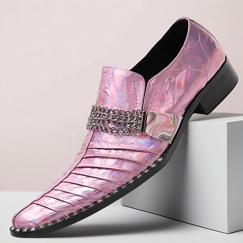 scarpe slip-on da uomo in pelle viola iridescente con dettaglio a catena, scarpe da sposa formali uniche per lo sposo, testimoni dello sposo e feste di matrimonio, calzature eleganti per uno stile da sposa audace