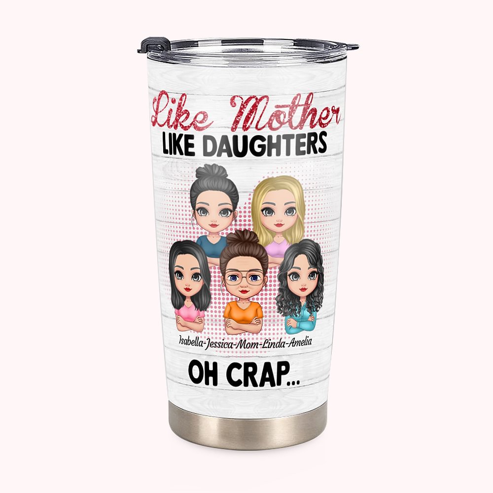 Vaso de 20oz Personalizado Like Mother Like Daughters Heart Background Showing Love for Each Other Regalo del Día de la Mujer para bebidas frías y cal