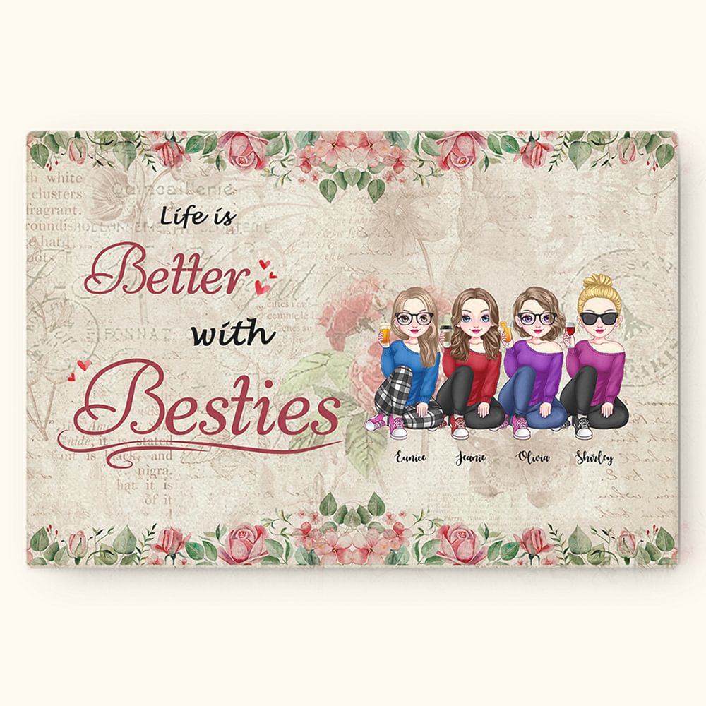 Peinture sans cadre personnalisée Life Is Better With Besties Décoration de chambre d'anniversaire Cadeau d'anniversaire pour les amis