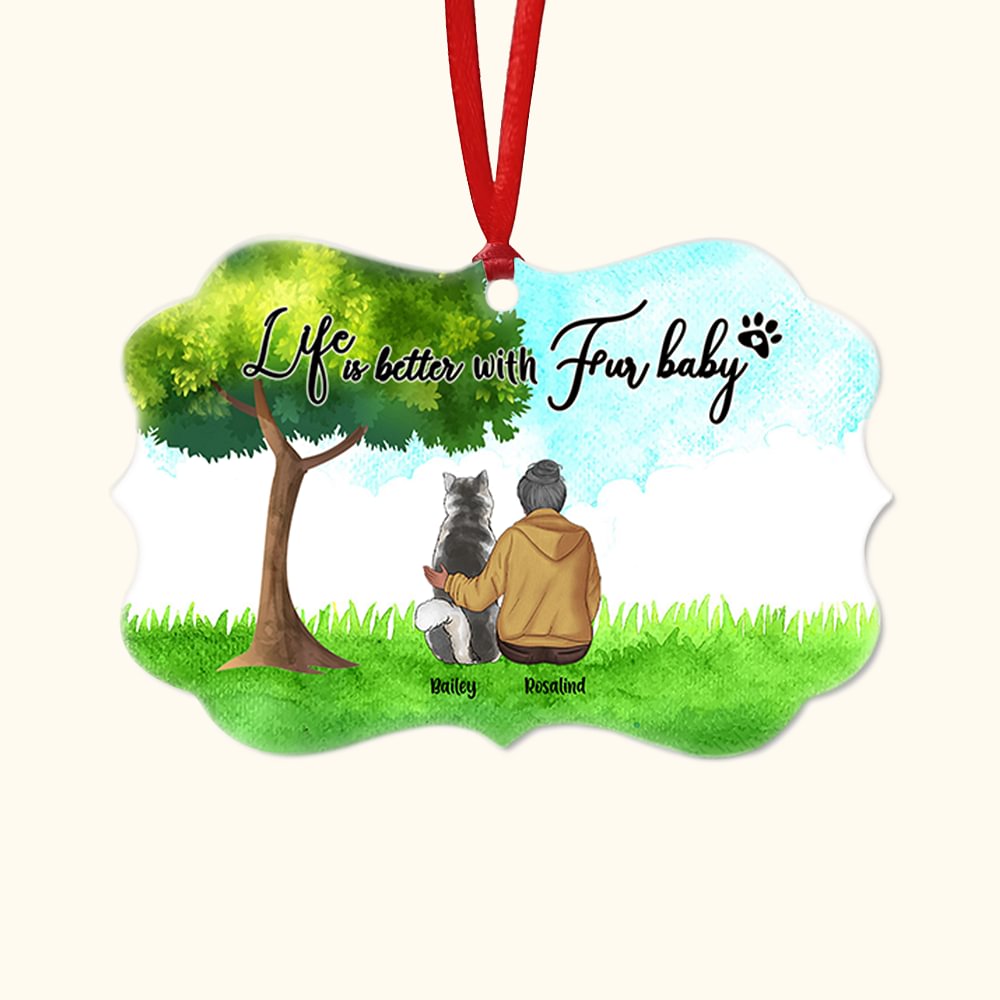 Ornamento de cerámica personalizado Life Is Better With Fur Baby con forma irregular y fondo de hierba Regalo de Navidad en memoria de los amantes de